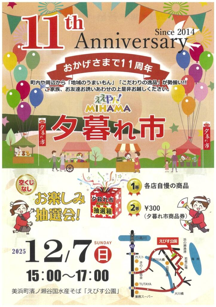 夕暮れ市11周年を記念してのお楽しみ企画、空くじなしの抽選会があります👍