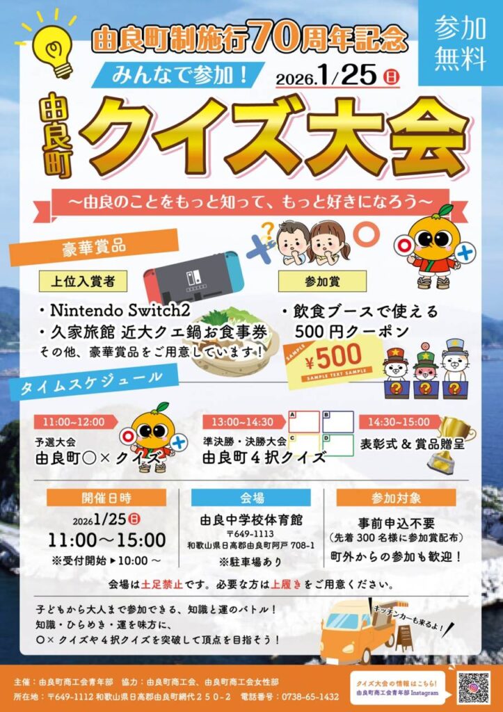 新年を迎え成人の日も終えた1月25日(日)に『由良町クイズ大会』を開催します!