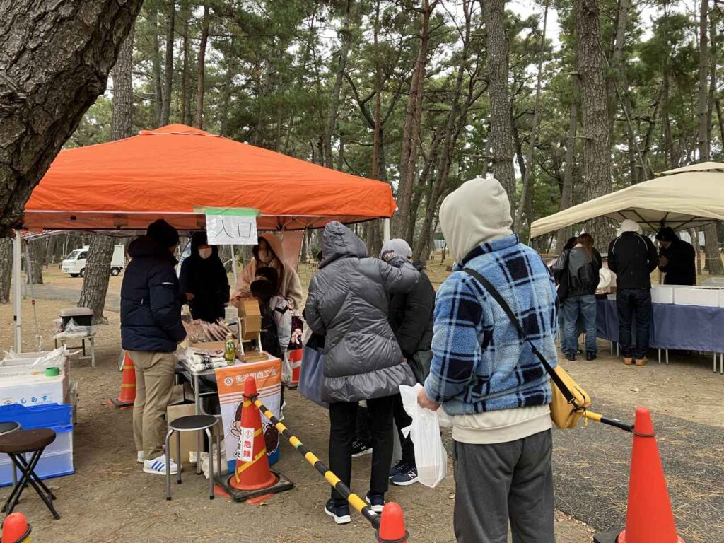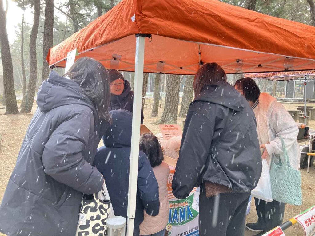 当日はとっても寒く(;O;)準備のときから風がビュービュー、時折雪⛄も舞う中、お客さん来てくれるかなと・・・と不安でしたが、開始と同時にたくさんの方が来場してくれ、寒さも吹き飛ぶ大盛況の夕暮れ市&ガラガラ抽選会となりました。