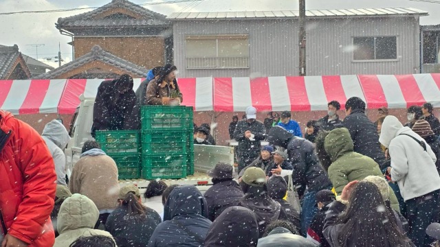 イベントのクライマックス『おもちまき』には、本格的な降雪が☃