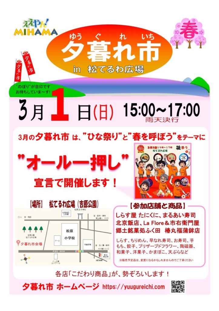 3月の夕暮れ市 テーマは”ひな祭り”そして”春を呼ぼう”(^^)/