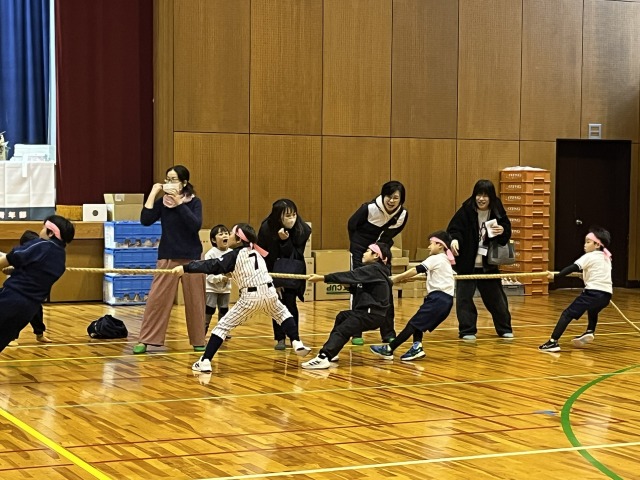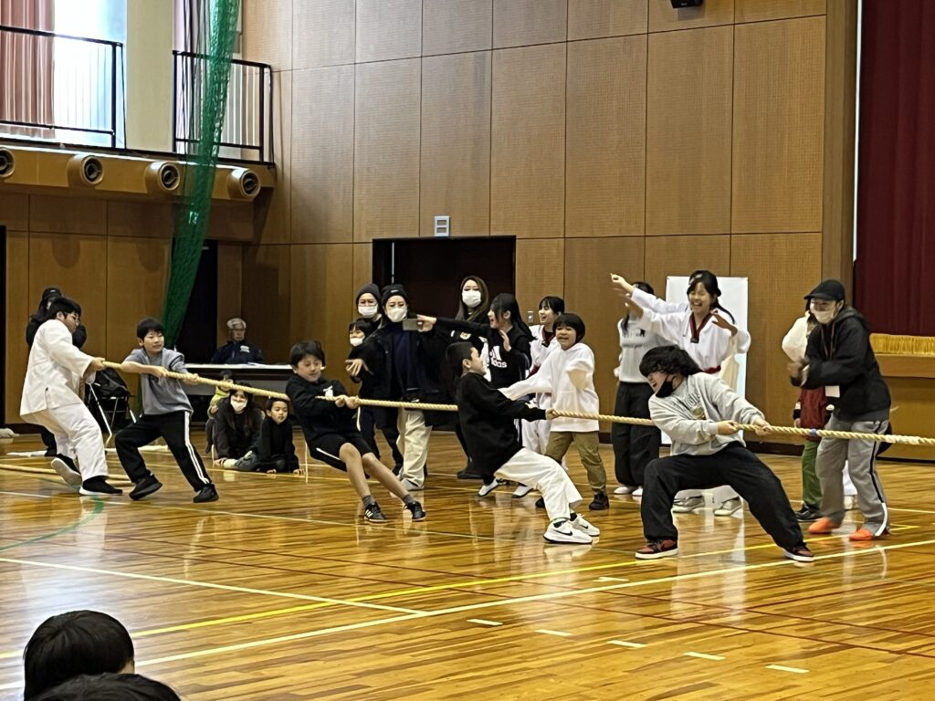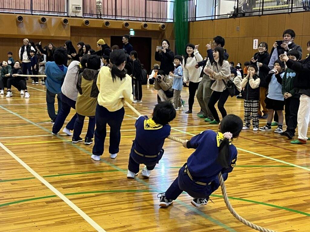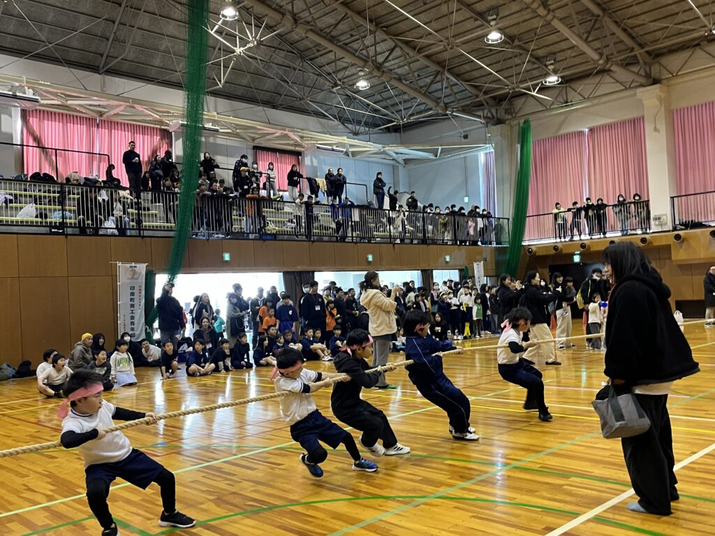 風も強く、午後からは雪が降る❄️寒い一日でしたが、それに負けず体育館の中では綱を引くこどもたちと応援する人たちの熱い戦いが繰り広げられました。